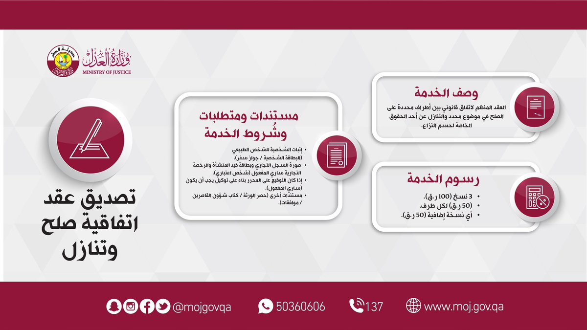حكومي قطر Twitterren لطلب توثيق توكيل رسمي عام يجب على الراغبين في توكيل آخرين لإدارة ممتلكاتهم والتصرف بالنيابة عنهم في المسائل القانونية الأخرى التقدم إلى وزارة العدل بطلب توثيق توكيل رسمي