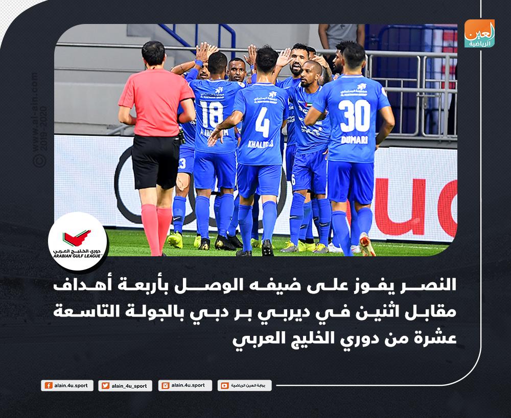 العين الرياضية On Twitter النصر يفوز على ضيفه الوصل بأربعة أهداف مقابل اثنين في ديربي بر دبي بالجولة التاسعة عشرة من دوري الخليج العربي النصر الوصل Https T Co H0ynzs2byd
