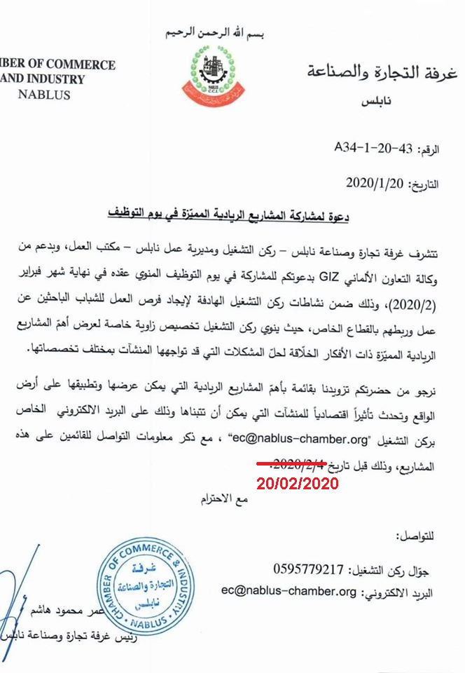 مشاريع ريادية ويوم توظيف غرفة تجارة وصناعة نابلس