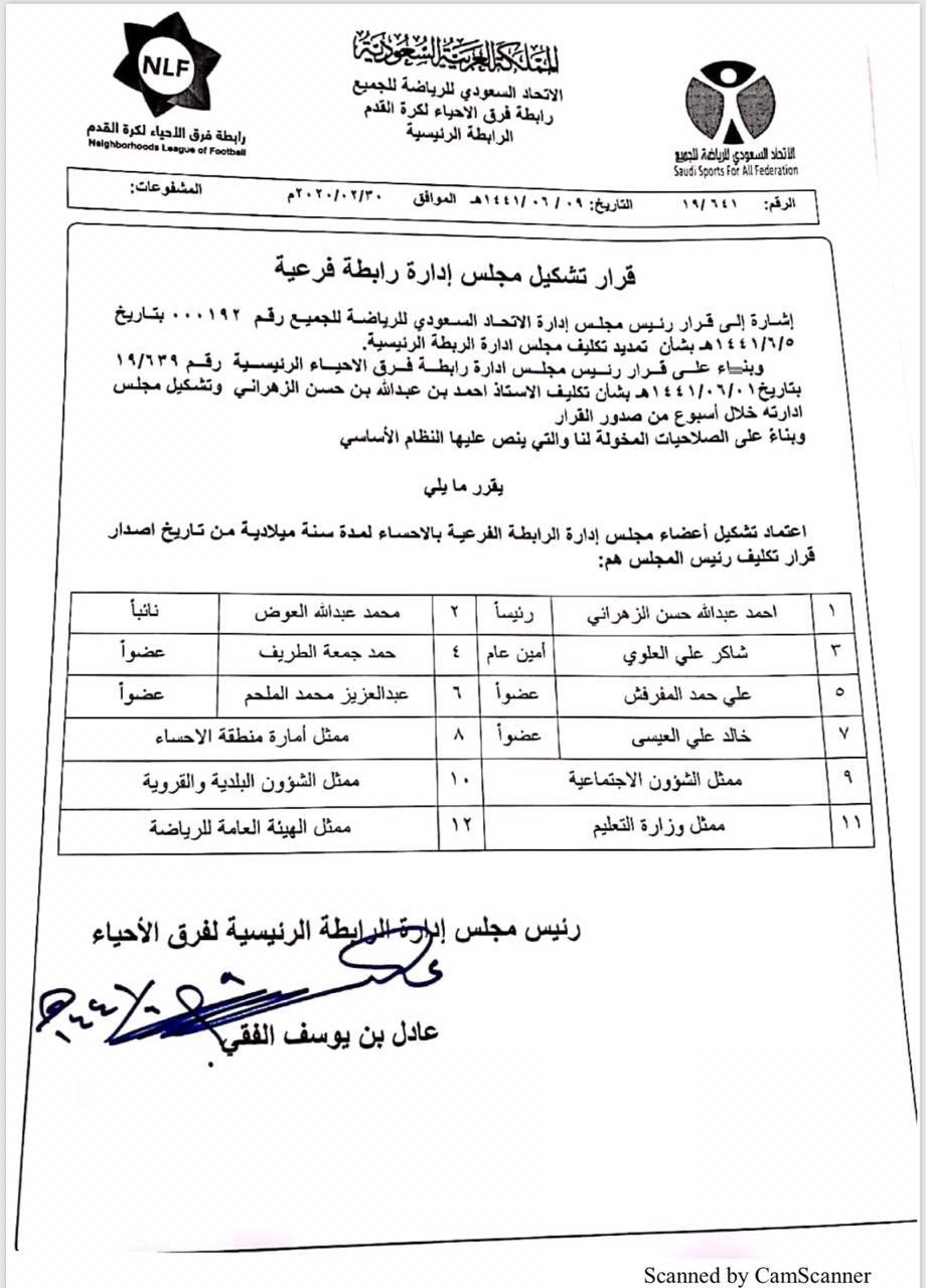 اعتماد تشكيل مجلس ادارة الرابطة الفرعيه لفرق الاحياء بالاحساء شاهد الآن