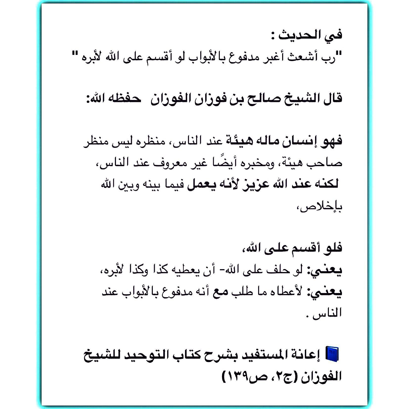 العلامة صالح الفوزان On Twitter في الحديث رب أشعث أغبر مدفوع بالأبواب لو أقسم على الله لأبره قال الشيخ صالح بن فوزان الفوزان حفظه الله فهو إنسان ماله هيئة عند