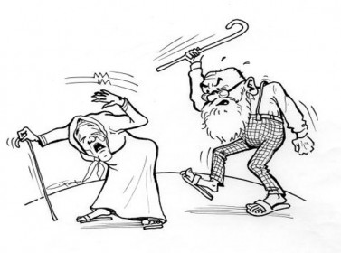 الاردن عمره 105 اعوام يضرب زوجته 90 عاما بالعكاز على رأسها