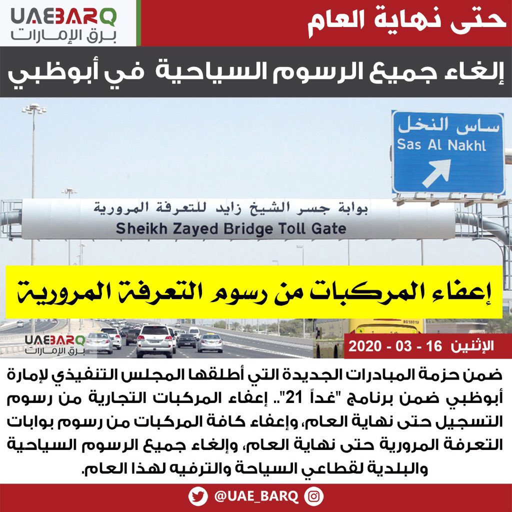 برق الإمارات On Twitter إعفاء كافة المركبات من رسوم بوابات التعرفة المرورية وإلغاء جميع الرسوم السياحية في أبوظبي حتى نهاية العام برق الإمارات Https T Co N8s0osrt0x