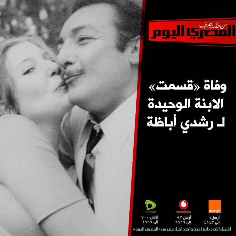 صحيفة المصري اليوم وفاة قسمت الابنة الوحيدة ل رشدي أباظة والجنازة الأحد في الهرم