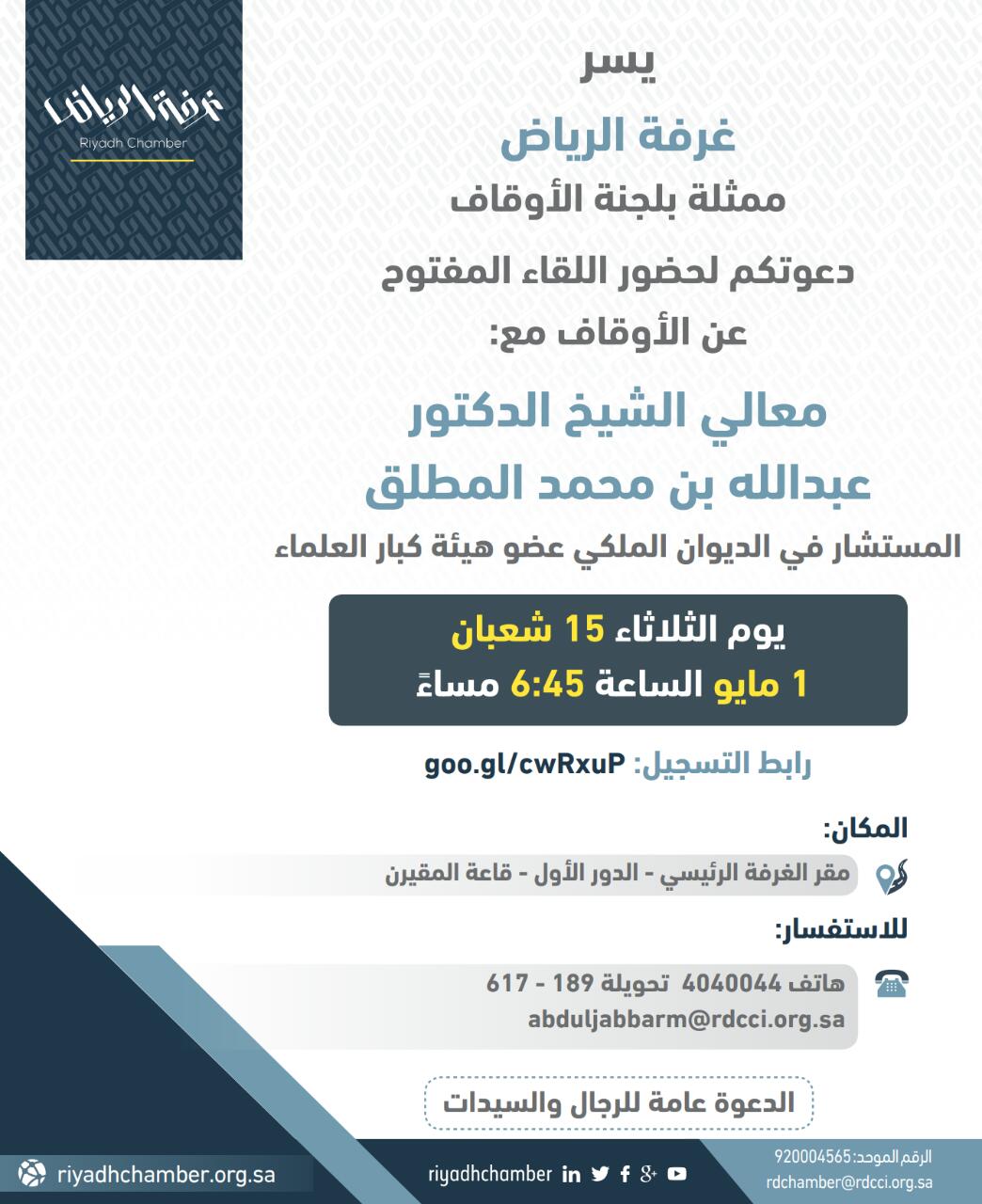 غـ ر فـ ة ا لـ ر يـ ا ض On Twitter دعوة لقاء مفتوح مع معالي الشيخ الدكتور عبدالله المطلق المستشار في الديوان الملكي عضو هيئة كبار العلماء يوم الثلاثاء 1