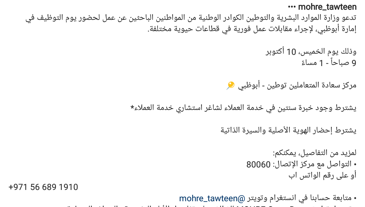 وزارة الموارد البشرية والتوطين دولة الإمارات