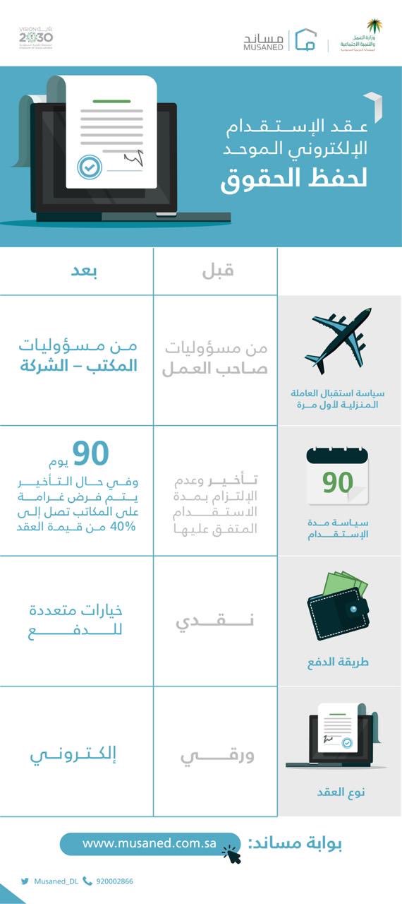 مساند Musaned On Twitter عقد الإستقدام الإلكتروني الموحد يضمن لك العديد من المزايا تعرف عليها وعلى المكاتب المرخص لهم من خلال البوابة الإلكترونية عبر الرابط Https T Co Vuapgdqvuq Https T Co Mjrzdwnrsj