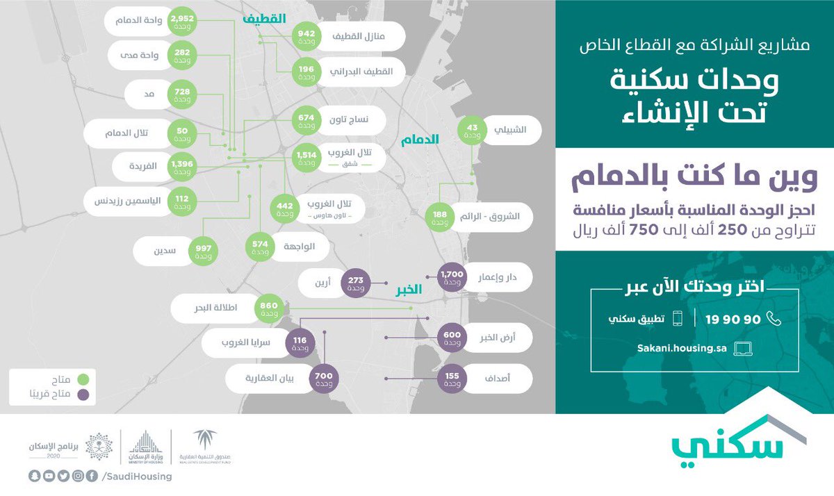 وزارة الإسكان در توییتر ولأهالينا في الدمام جاءت المشاريع السكنية تحت الإنشاء بأكثر من خيار سكني متاح أمام الأسرة في الكثير من المواقع المختلفة مراعية القرب من الجميع وذلك بأسعار تبدأ من