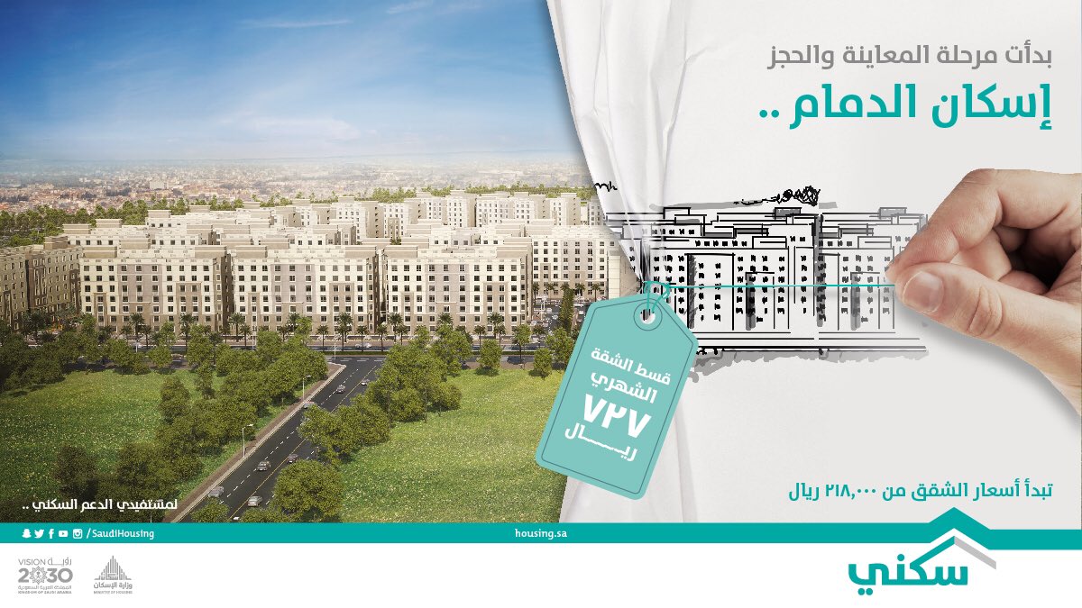 Uzivatel وزارة الإسكان Na Twitteru لمستفيدي الدعم السكني في إسكان الدمام بدأت مرحلة المعاينة والحجز حيث تبدأ أسعار الشقق من ٢١٨ ألف وقسط شهري يبدأ من ٧٢٧ ريال Https T Co 1is1k9odjk