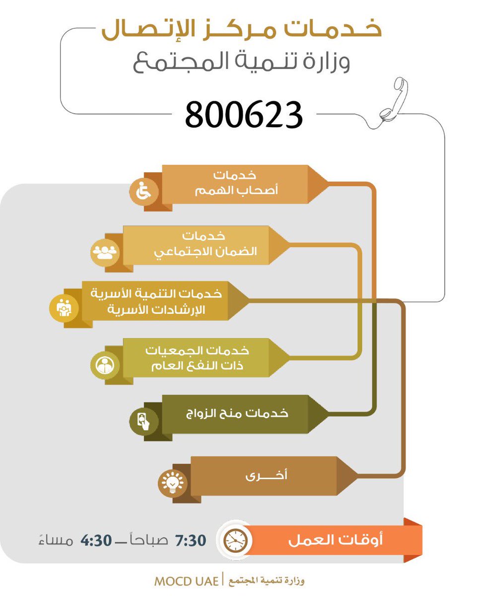 وزارة تنمية المجتمع No Twitter خصصت وزارة تنمية المجتمع الرقم المجاني 800623 للرد على جميع استفسارات الجمهور حول الخدمات المقدمة لهم وذلك من يوم الأحد ولغاية يوم الخميس من الساعة 7 30 صباحا