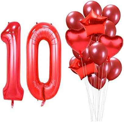 Magjuche 40 بوصة أحمر 10 عيد الميلاد هيليوم جامبو رقم 10 البالونات الرقمية الأحمر اللاتكس بالونات عيد الميلاد لوازم تزيين الحفلات Amazon Ae