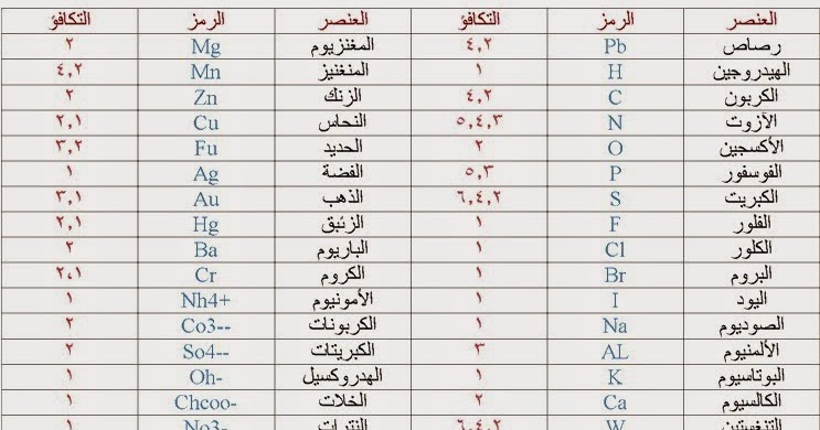 جدول رموز بعض العناصر وتكافؤها جدول صيغ مدونة ثانوية خمس نجوم Facebook