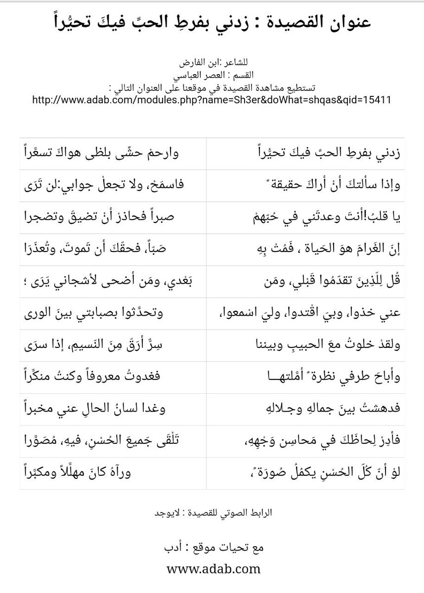 أحمد عابد شيخ A Twitter زدني بفرط الحب فيك تحيرا وارحم حشى بلظى هواك تسعرا يا قلب أنت وعدتني في حبهم صبرا فحاذر أن تضيق وتضجرا إبن الفارض Http T Co Qa9ysrstg7