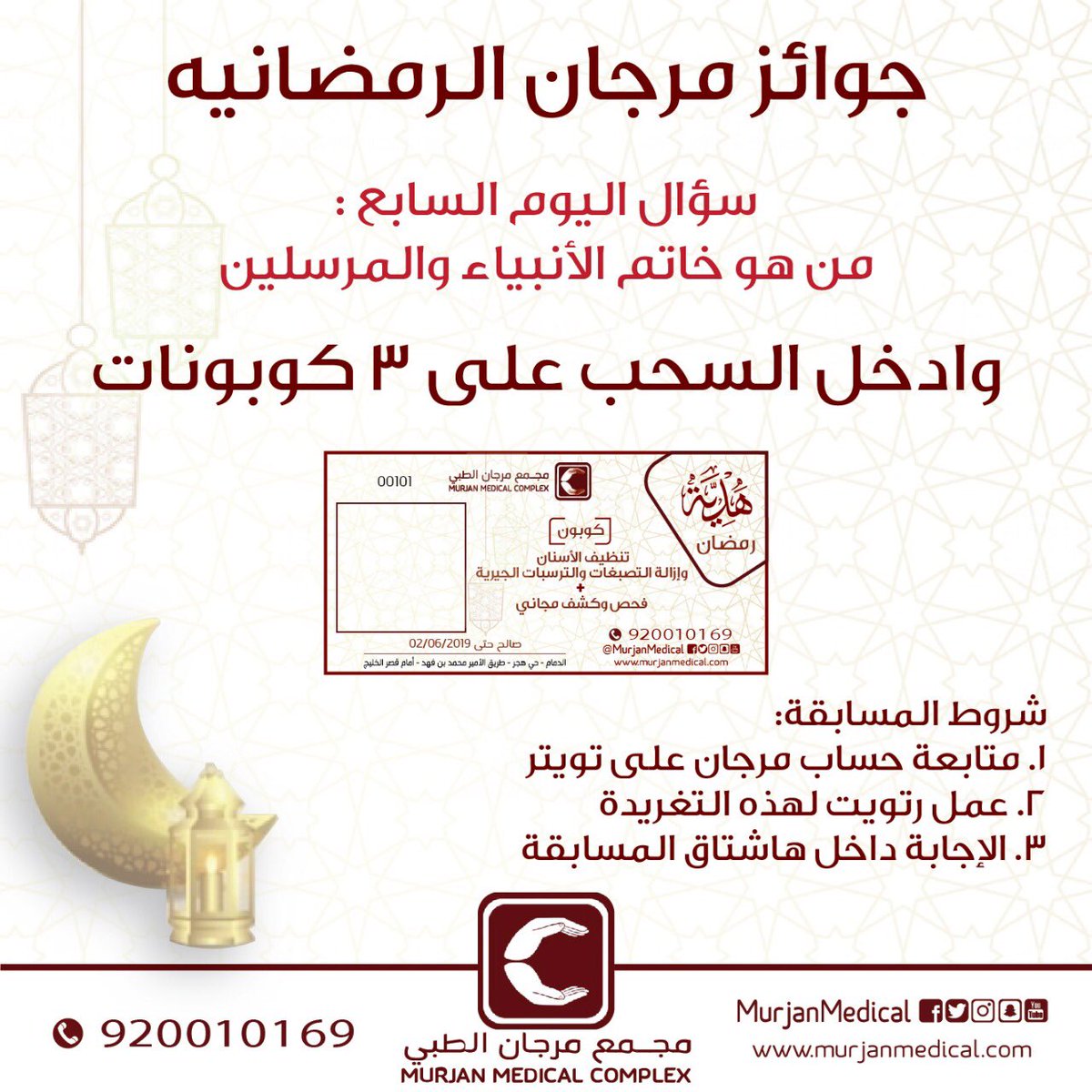 مجمع مرجان الطبي On Twitter سؤال اليوم في مسابقة مرجان الرمضانيه من هو خاتم الأنبياء والمرسلين شروط المسابقة متابعة حساب Murjanmedical رتويت للتغريدة الإجابة في نفس الهاشتاق مع مرجان الكل ربحان Https T Co Waptrldxy6