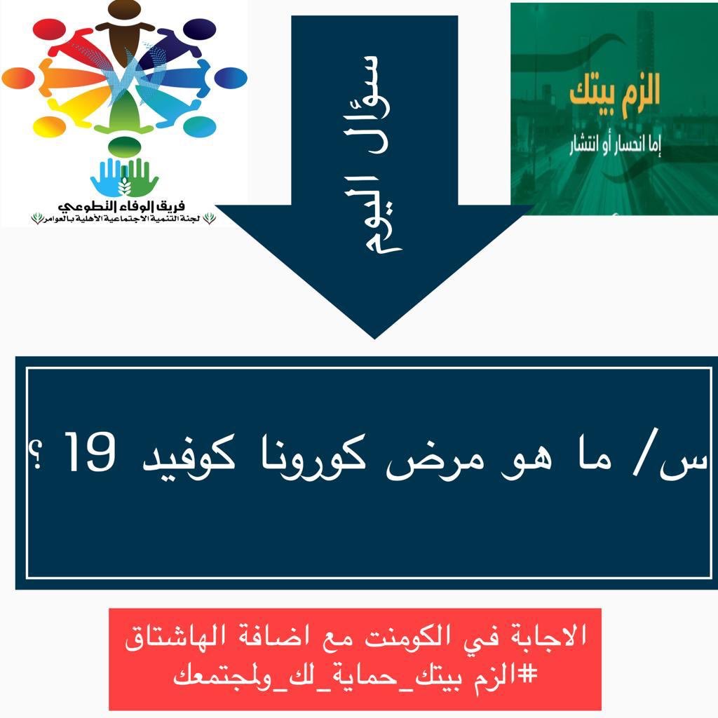 فريق الوفاء التطوعي On Twitter سؤال اليوم ماهو مرض كورونا كوفيد19 1 متابعة حساب الفريق Alwafa Ta 2 الإجابة على السؤال داخل هاشتاق الزم بيتك حمايه لك ولمجتمعك 3 إعادة تغريد تغريدة السؤال فريق الوفاء التطوعي العرضيات Https T Co Qdf3dzfprb