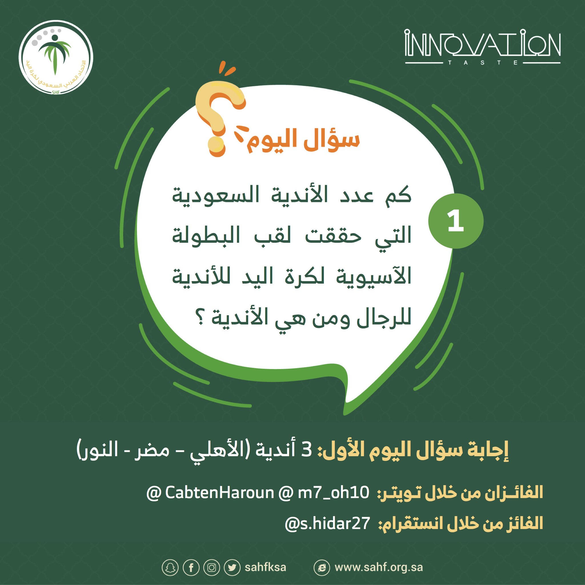 الاتحاد السعودي لكرة اليد On Twitter مسابقة اتحاد اليد الفائزان في سؤال اليوم الأول عبر تويتر M7 Oh10 Cabtenharoun المسابقة برعاية Innovationtaste Https T Co 7jvc42ylxv