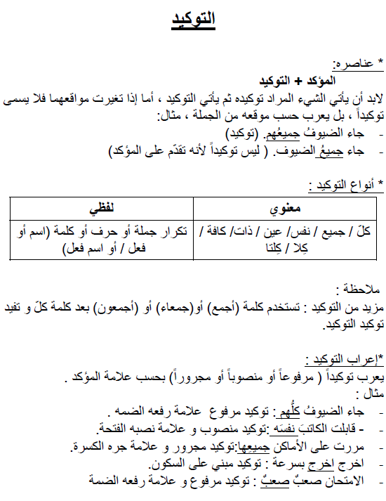 حل درس التوكيد في اللغة العربية الصف التاسع الفصل الثاني العلوم والتكنولوجيا