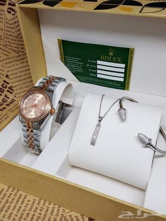 ساعات رولكس نسائيه Rolex درجه اولى مع 3 اساور و خواتم و علبه و كرت الماركه هدايا هنوف