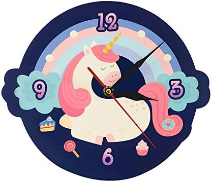 Gweffx ساعة حائط جميلة حلم وحيد القرن على شكل وحيد القرن ساعة حائط كرتون وحيد القرن مع قوس قزح ملون ساعة حائط غرفة غرفة غرفة حضانة ديكور في ساعات الحائط من المنزل