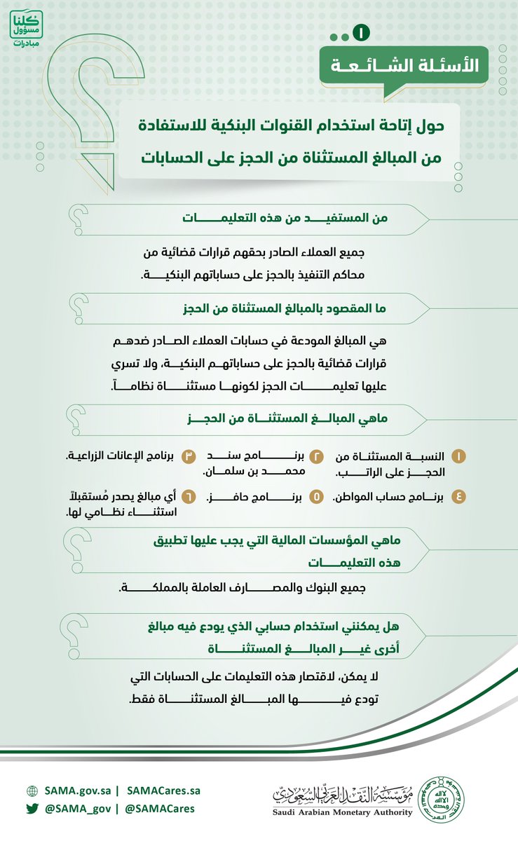 Samacares ساما تهتم On Twitter أبرز الاستفسارات حول إتاحة استخدام القنوات البنكية للاستفادة من المبالغ المستثناة من الحجز على الحسابات مبادرات كلنا مسؤول ساما تهتم Https T Co Eti2payh0f