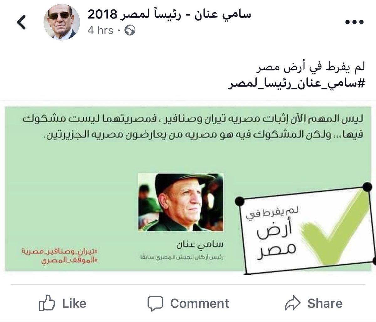 Hosam Yahia On Twitter صفحة سامي عنان الرسمية سامي عنان لم يفرط في أرض مصر ضربة قفا ل السيسي مصر