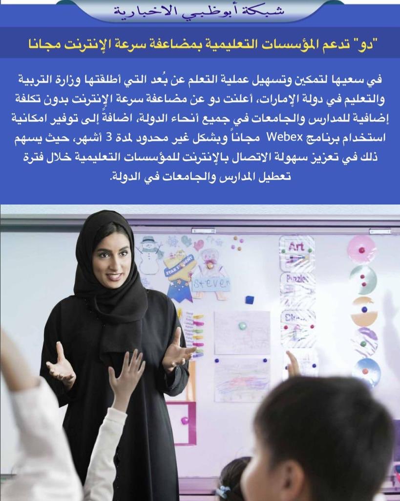 شبكة أبوظبي Twitterren دو تدعم المؤسسات التعليمية بمضاعفة سرعة الإنترنت مجانا Dutweets