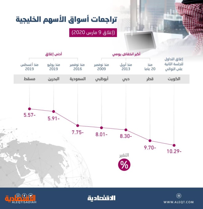 كورونا والنفط ضربتان في وجه البورصات العالمية والخليجية صحيفة الاقتصادية
