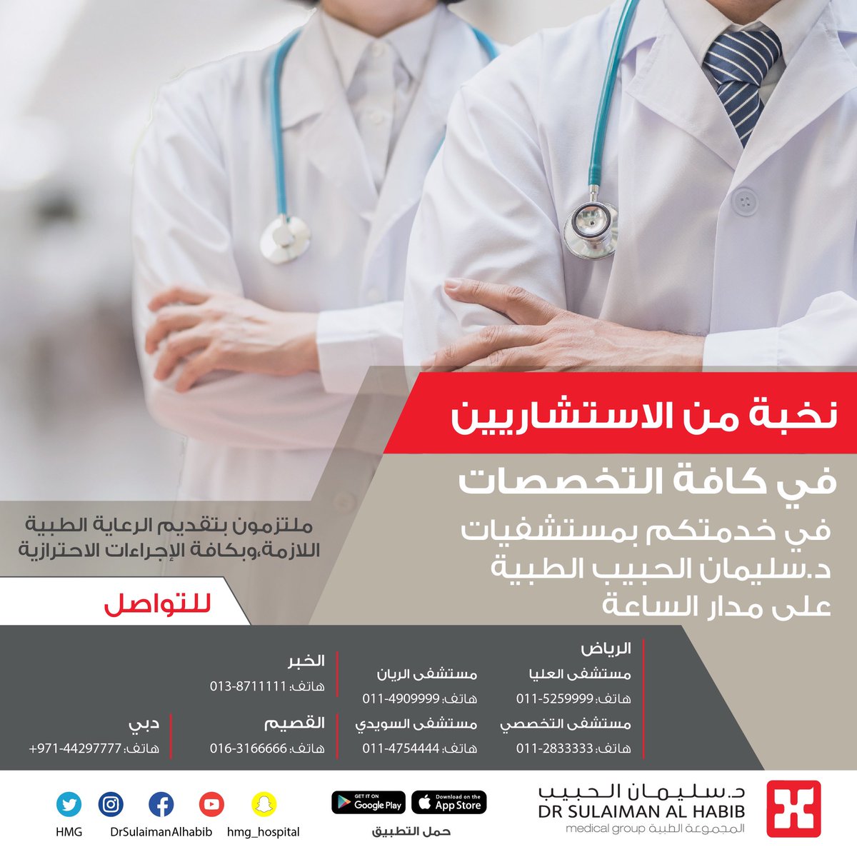 مجموعة د سليمان الحبيب الطبية V Twitter نخبة من الاستشاريين في كافة التخصصات في خدمتكم بمستشفيات د سليمان الحبيب الطبية مجموعة د سليمان الحبيب الطبية