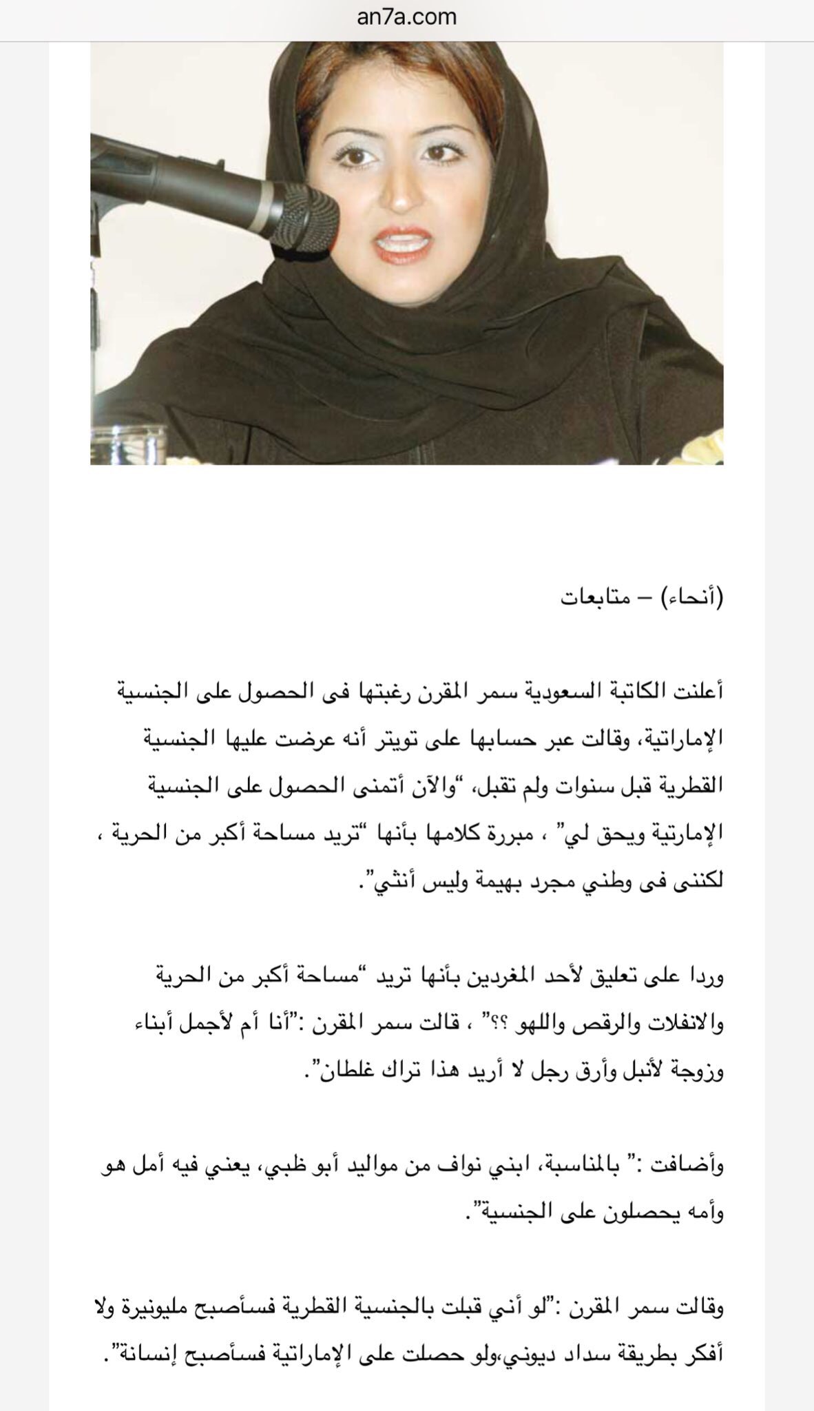 بـيـبـه العتيبي On Twitter سمر المقرن اللي تم عرض الجنسية القطريه عليها وزعلانه انها ضيعتها ليه تم عرض الجنسية القطرية ع سمر تحديدا Https T Co O260agyam6