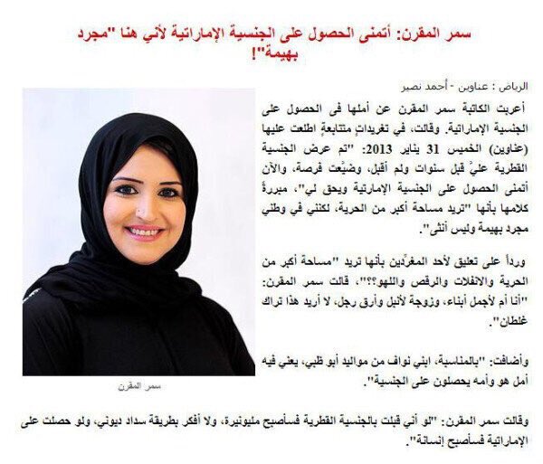قائمة العار On Twitter سمر المقرن S Almogren أتمنى الحصول على الجنسية الإمارتية لاني في بلدي مجرد بهيمة ولست أنثى سمر المقرن أنا بالسعودية كالبهيمة Https T Co Ny5peapzbp