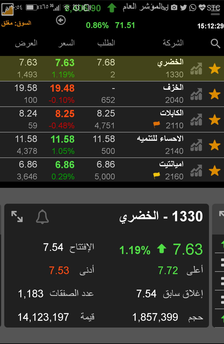 مكهرب الاسهم نعود بحذر V Twitter للجميع كلامي عن اي سهم كلام فني سهم الخضري اغلق الثلاثاء 5 يونيو 2018 عند 7 63 وفتيا مادام فوق 7 50 ماشي حاله لكن لو كسر