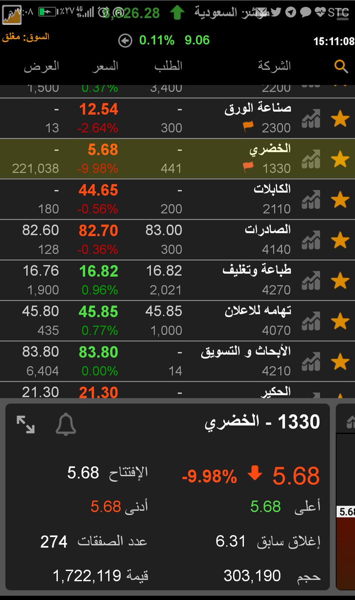 مكهرب الاسهم السعودية On Twitter وضع سهم الخضري الخميس 14 فبراير 2019 بعد اعلاته الكارثي ان خسارته 198 افتتح نسبة تحت عند 5 68 وعروض تفوق خمسة ملايين سهم على النسبة تحت