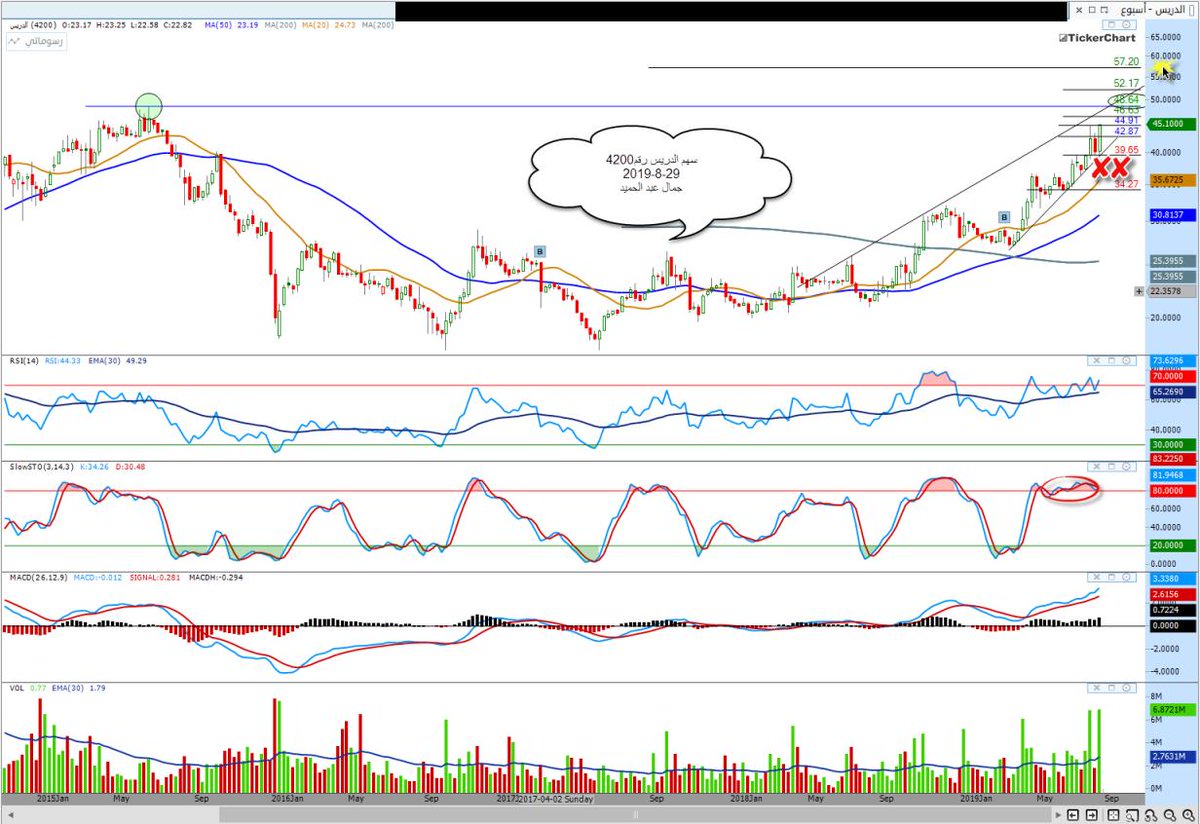 جمال عبد الحميد على تويتر سهم الدريس رقم 4200 اغلق45 10بعد ان لامس45 15 ورأينا سيوله شرائيه جيده على السهم لذلك نتوقع باذن الله ان يثبت فوق42 87 ويخترق26 63 ليختبر القمه التاريخيه48 64التى باختراقها ممكن يحقق