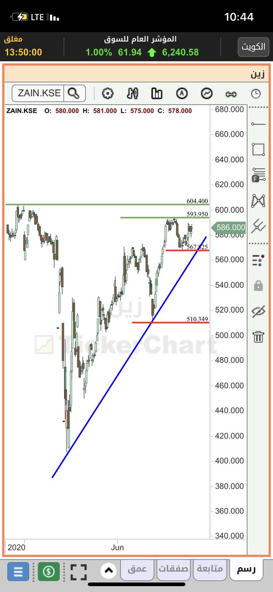 حمود العجمي على تويتر سهم زين بعد تصحيح السهم اغلق اليوم عند 572 وآخر قمة هبط منها عند 579 وهي مقاومة السهم حاليا تجاوزها بإغلاق جلستين ممتاز والله اعلم