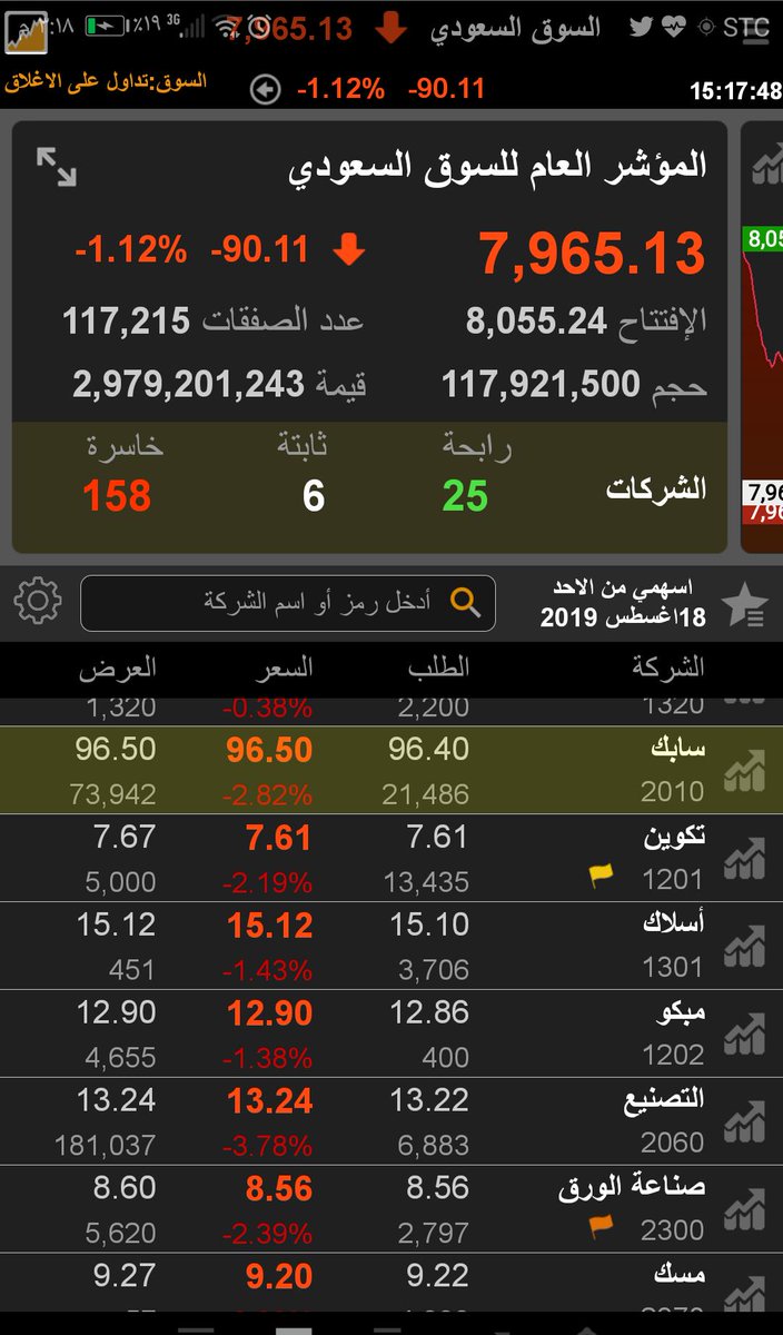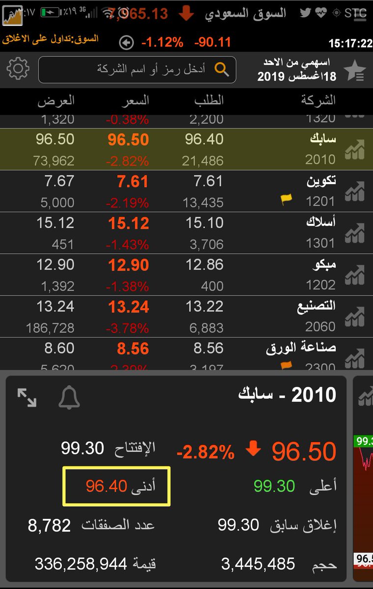 مكهرب الاسهم V Tvittere وضع سوقنا و وضع سهم سابك بعد اغلاق الثلاثاء 10 سبتمبر 2019
