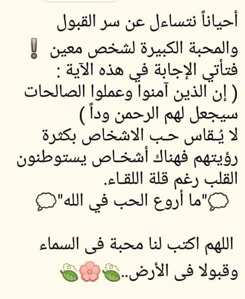 آهـ ــات فـاطمـ ـية Auf Twitter أحيانا نتساءل عن سر المحبة لشخص كريم فتأتي الإجابة في هذه الآية إن الذين آمنوا وعملوا الصالحات سيجعل لهم الرحمن ودا لا ي ـقاس حـب الأشخاص
