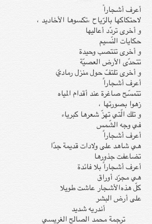 Zain زيـن Ar Twitter و هذه قصيدة مترجمة لأندريه شديد بعنوان أشجار الأشجار كالبشر أنواع و أصناف Http T Co Nrfw1rlvb9