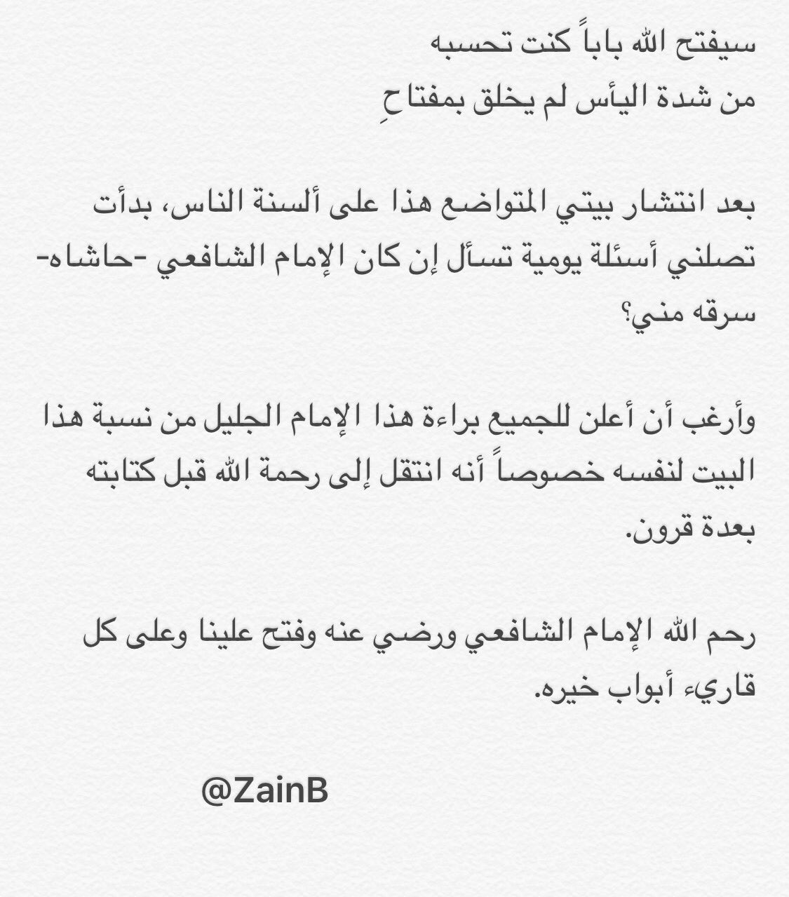Zain زيـن On Twitter إعلان براءة الإمام الشافعي