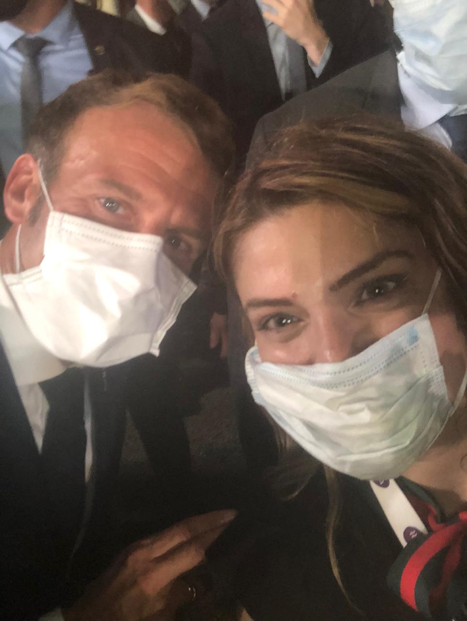 ماكرون فى صورة سيلفى مع مراسلة اليوم السابع ويختتم مؤتمره من قلبى سلام لبيروت اليوم السابع