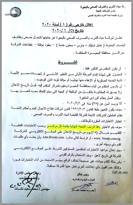 اعلان وظائف شركة مياه الشرب والصرف الصحي بالبحيرة تطلب عمال وحارس ومعاون والتقديم حتى 4 2 2020