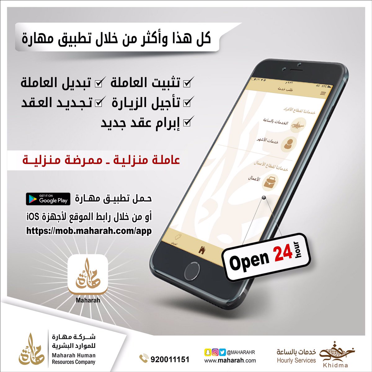 شركة مهارة للموارد البشرية On Twitter طورنا خدماتنا وأصبحت بمتناول الجميع فمن خلال تطبيق مهارة تستطيع طلب وتنفيذ كل الخدمات التي تحتاجها وأنت في مكانك أو تطلبها عبر الرابط التالي Https T Co Agg4pckexm أو