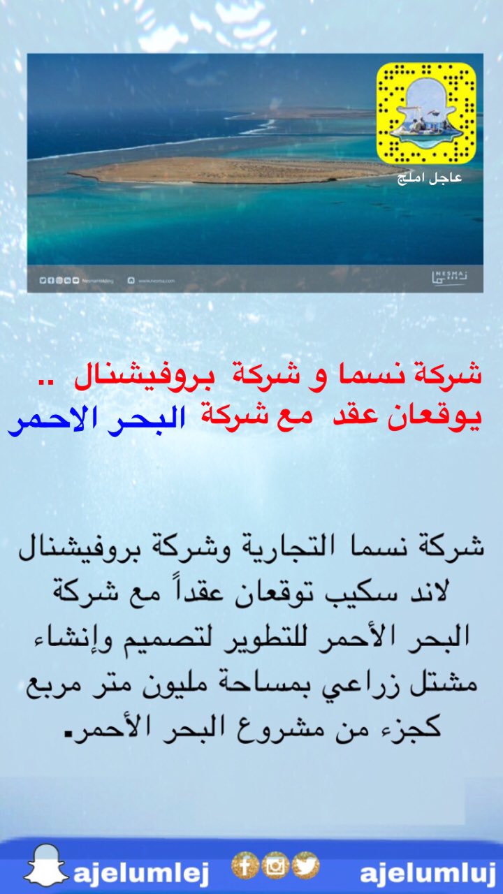 عاجل املج Pa Twitter عاجل املج شركة نسما التجارية وشركة بروفيشنال لاند سكيب توقعان عقدا مع شركة البحر الأحمر للتطوير لتصميم وإنشاء مشتل زراعي بمساحة مليون متر مربع كجزء من مشروع البحر الأحمر