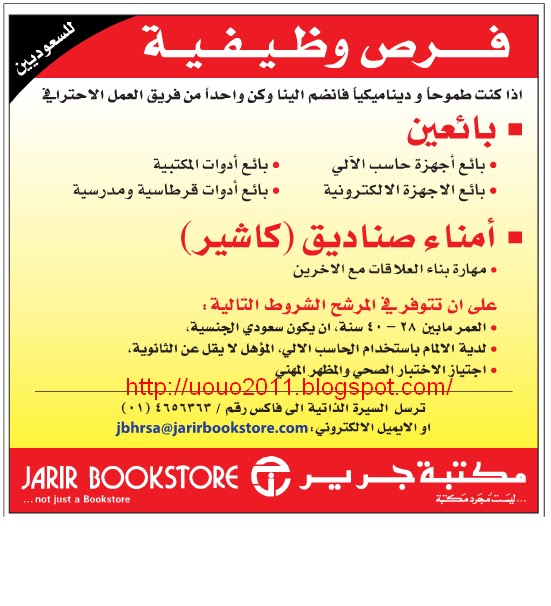 مكتبه جرير السعوديه وظائف عربية وخليجية