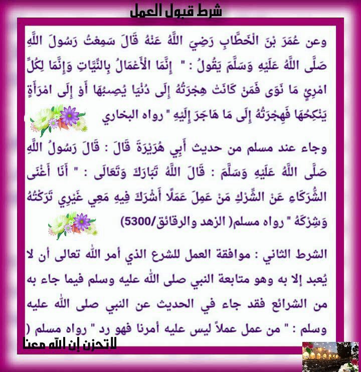 أنيسات الجنة شروط قبول العمل عند الله عزوجل Facebook